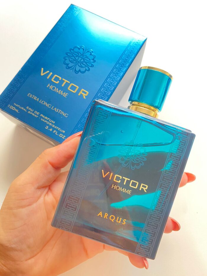 VICTOR da marca ARQUS  é a fragrância que interpreta a masculinidade sublime através de uma aura luminosa com um frescor intenso, vibrante e brilhante, obtido a partir da combinação de folhas de hortelã, cascalho de limão italiano e maçã verde. Uma sensualidade viciante entregue por notas orientais, intrigantes e envolventes como Tonka Beans, Amber, Geranium Flower e Vanilla.